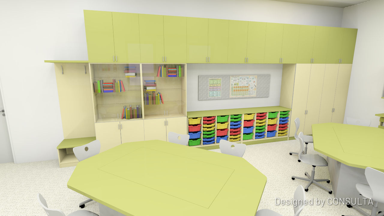 3D vizualizace multifunkční kreativní učebny: Podpořte tvořivost a inovativní výuku | Consulta
