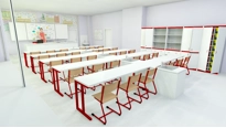 Vizualizace odborné učebny chemie pro plánovanou rekonstrukci. Součástí vizualizace může být také podrobný popis realizace v návaznosti na jednotlivá řemesla, předběžný položkový rozpočet do projektu, návrh použitých technologií atd. Vše je otázkou domluvy při objednání provedení a poskytnutí potřebných podkladů.