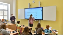 Ve všech těchto moderních učebnách jsou nainstalované interaktivní dotykové LCD displeje Legamaster ETX-8620 s úhlopříčkou 86" včetně čtyř párů bílých, fixem popisovatelných keramických křídel.