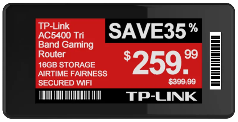 Velikost 2.6" je vhodná pro regálové vystavení s pohodlným zobrazením středního množství informací. EPD / E-ink obrazovka s BLE 5.0 umožňuje okamžitou aktualizaci cen, snížení nákladů a eliminaci chybovosti. Nechybí LED signalizace a NFC pro komunikaci s PDA.