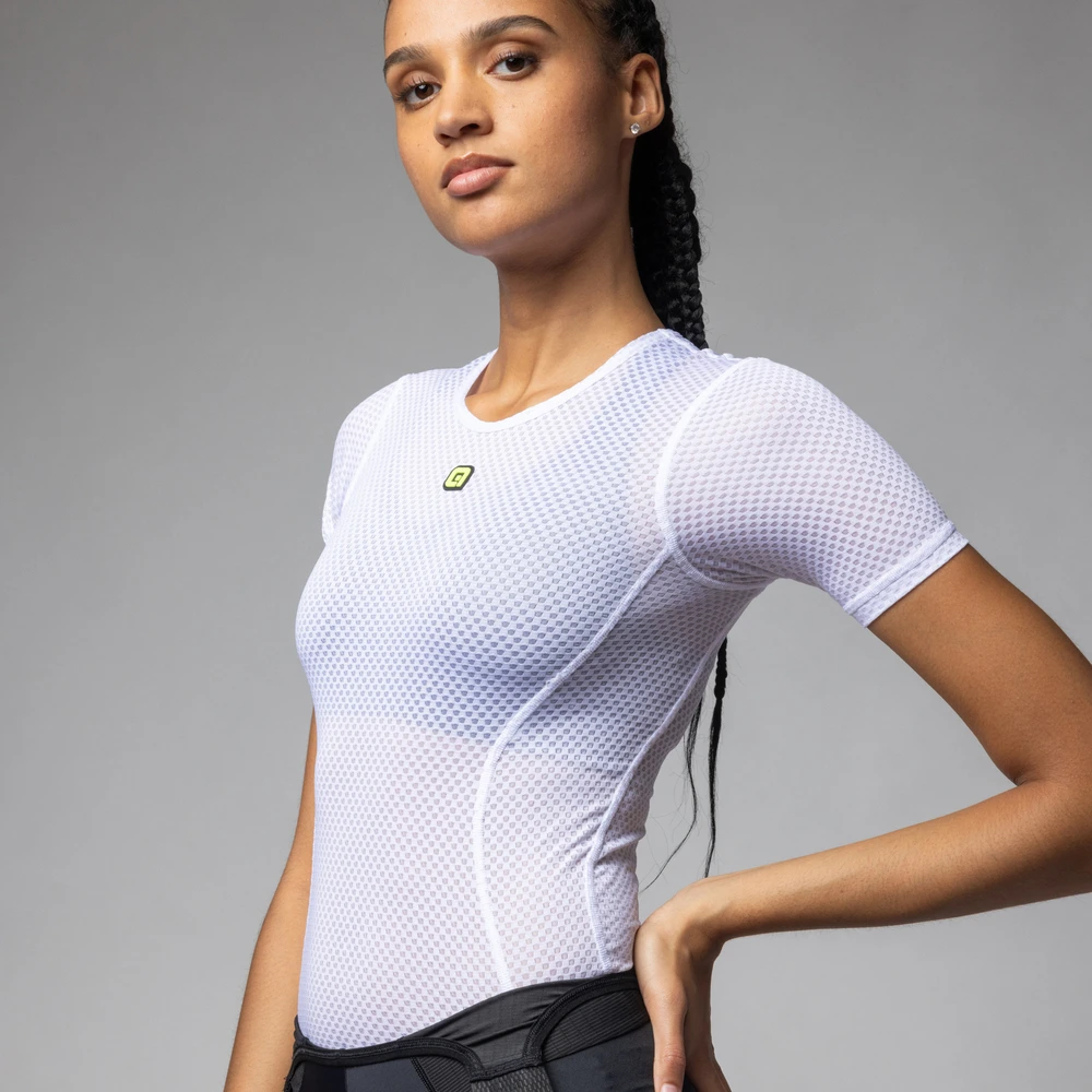 Dámská letní spodní vrstva ALÉ VELO ACTIVE v bílé barvě je extrémně lehká a při jízdě ji téměř neucítíte. Bezrukávové provedení ze síťoviny Velo Air rychle odvádí pot, výborně větrá a rychle schne i v horku.