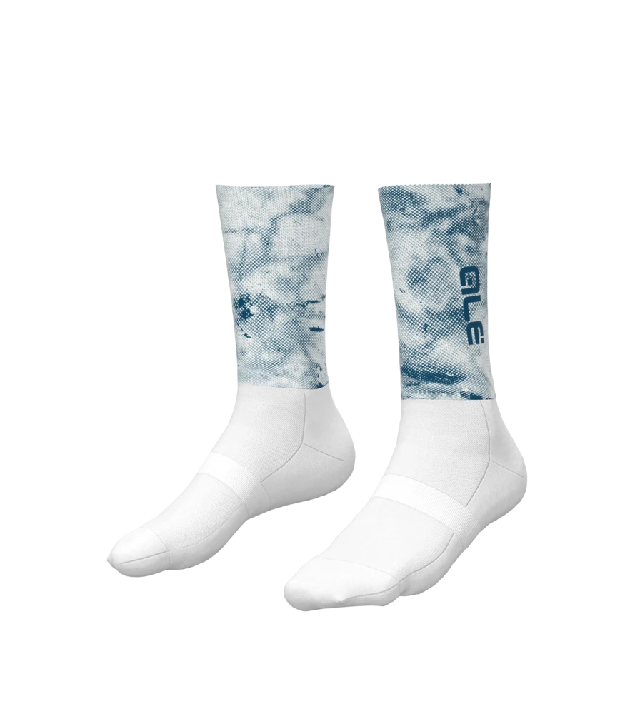 Unisex letní ponožky ALÉ TYPHOON v barvě lagoon jsou navržené pro co nejnižší odpor vzduchu a maximální stabilitu při jízdě. Horní 18 cm vysoká část z materiálu Aero Cell s hexagonální strukturou pomáhá zlepšit aerodynamiku, zatímco prodyšná spodní část podporuje odvod vlhkosti.