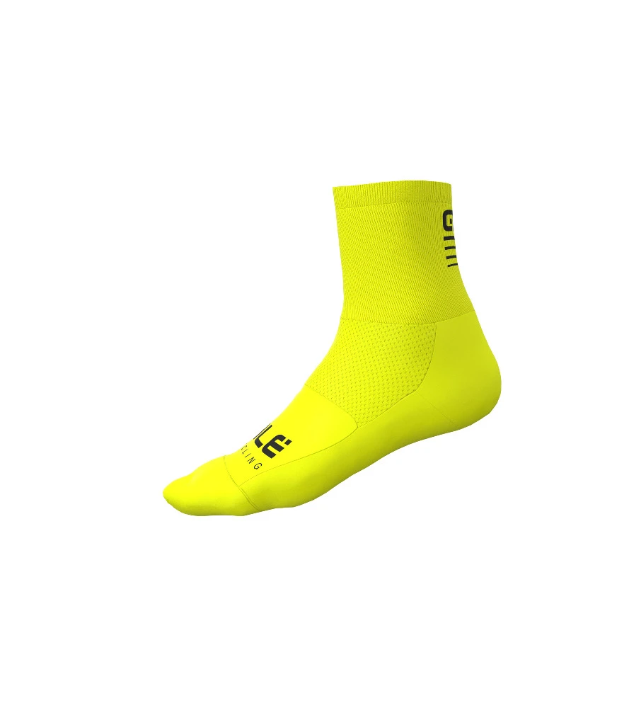Letní unisex cyklistické ponožky ALÉ Strada Q-skin Socks v barvě fluo yellow jsou navržené pro jízdu v teplejším počasí. Materiál Qskin s antibakteriální úpravou pomáhá udržet svěžest a síťovaná horní část podporuje rychlé schnutí.