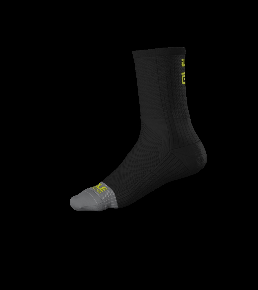 Letní cyklistické ponožky ALÉ COLOR BLOCK (vel. 40-43) z materiálu T-Care Plus s antibakteriální ochranou, rychleschnoucí síťovinou a 18cm lemem. Ideální do 30 °C, unisex, černé, model 2025.