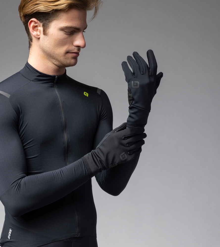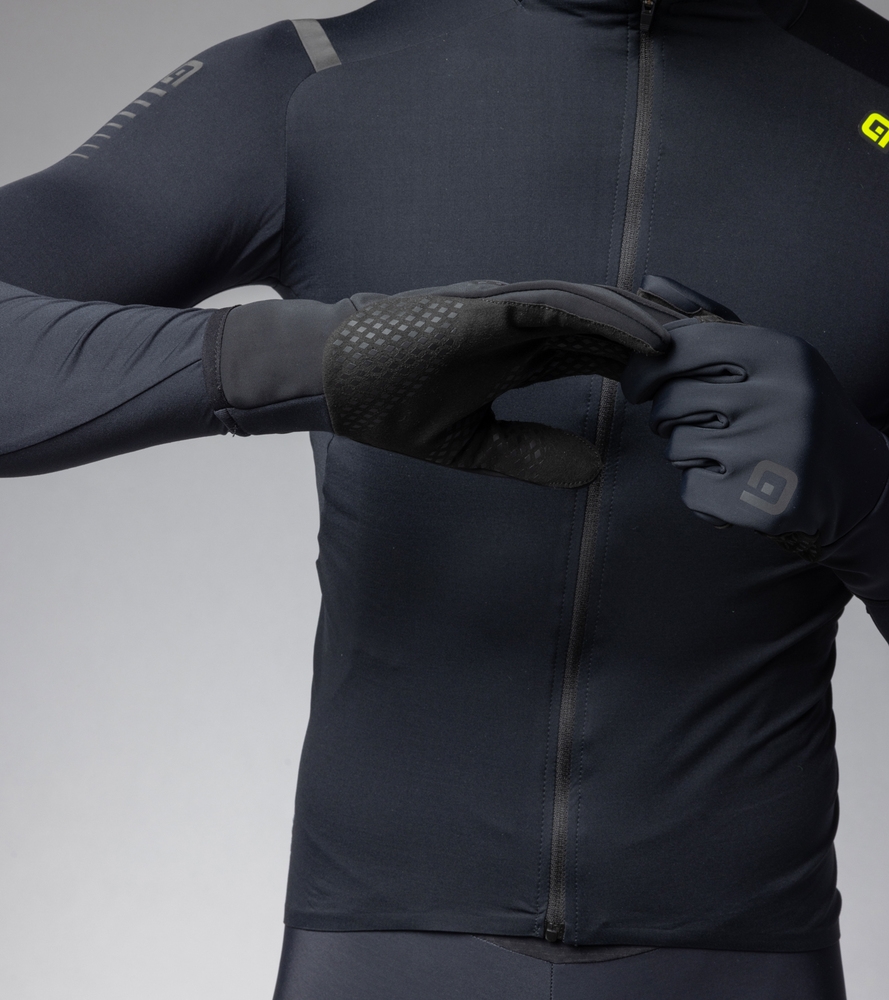 Technické cyklistické rukavice ALÉ ze softshellového větruodolného materiálu s ergonomickým předtvarovaným střihem. Protiskluzový silikonový potisk na dlani a prstech zajišťuje lepší úchop řídítek. Reflexní logo zvyšuje viditelnost.