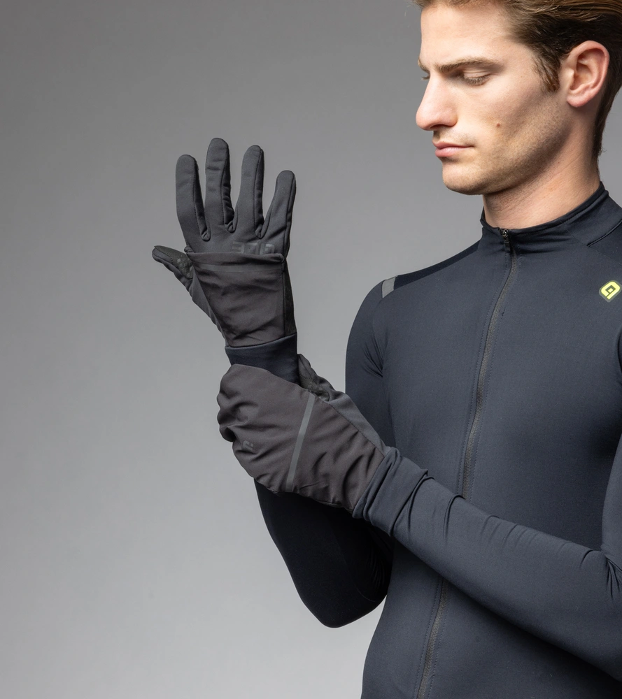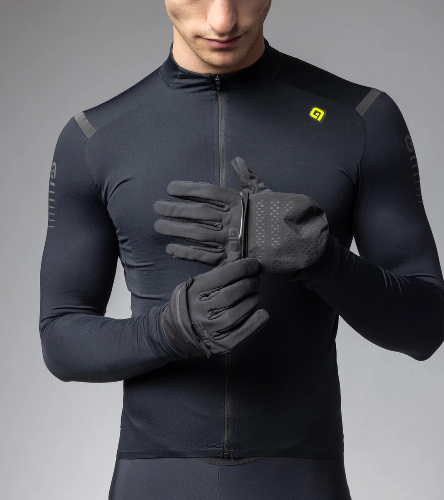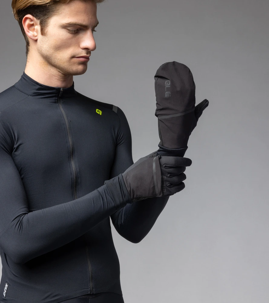 ALÉ SCIROCCO 2 v 1 jsou teplé zimní unisex rukavice v barvě black, navržené pro jízdu v chladném počasí. Hlavní předností je integrovaná větruodolná palčáková kapsa, kterou můžete během chvíle vytáhnout pro extra ochranu, nebo ji naopak snadno schovat do speciální kapsy na hřbetu ruky.