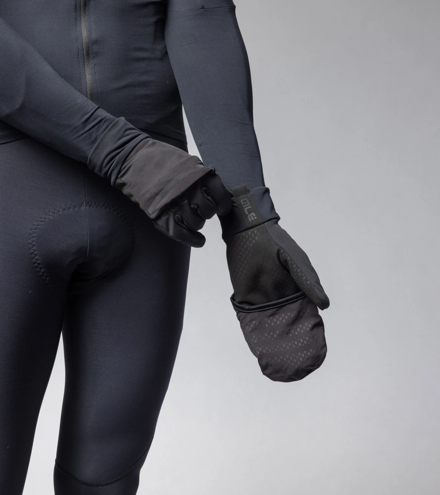 ALÉ SCIROCCO 2 v 1 jsou teplé zimní unisex rukavice v barvě black, navržené pro jízdu v chladném počasí. Hlavní předností je integrovaná větruodolná palčáková kapsa, kterou můžete během chvíle vytáhnout pro extra ochranu, nebo ji naopak snadno schovat do speciální kapsy na hřbetu ruky.