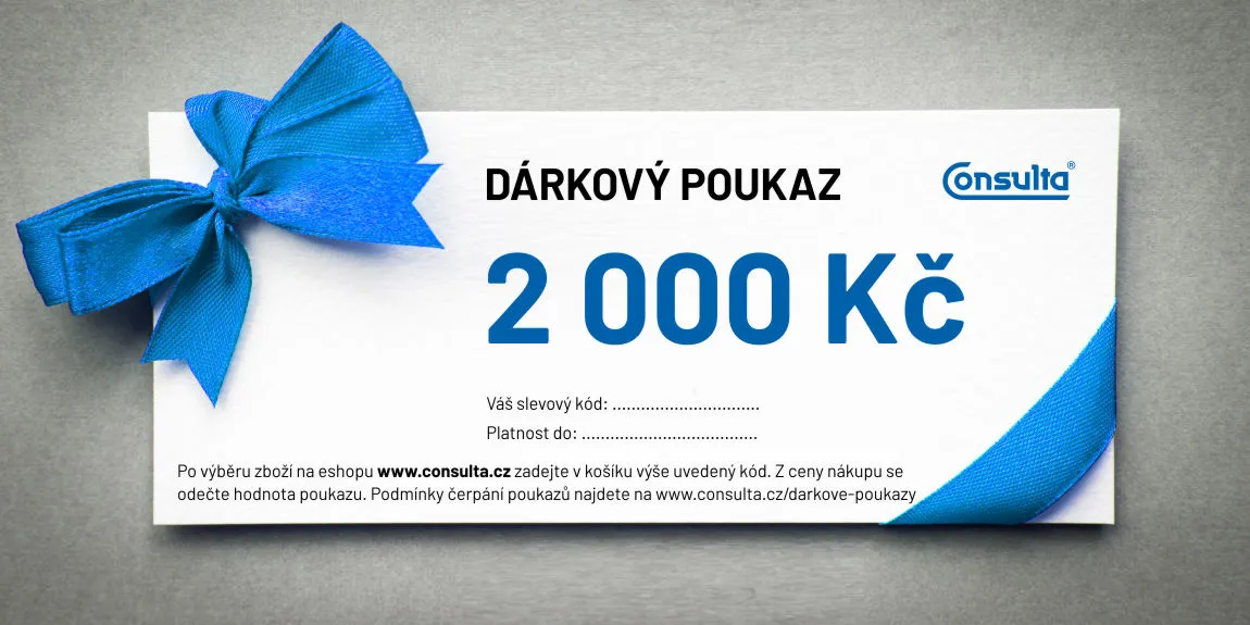 - Dárkový poukaz lze zakoupit u nás na prodejně Consulta ve Vyškově či online na e-shopu. V případě nákupu online, jakmile dárkový poukaz uhradíte, okamžitě vám ho zašleme na email, který uvedete v objednávce. Z toho důvodu je možná platba pouze platební kartou či bankovním převodem, nikoliv dobírka.