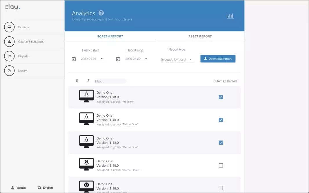 Pokud máte více displejů může každý zobrazovat vlastní obsah nebo může být část obsahu společná pro všechny displeje a část jen pro konkrétní patro, oddělení, budovu nebo výrobní úsek. Obrazovku displeje lze rozdělit na různé části a v nich se pak zobrazuje obsah, který určíte. Díky analitice a záznamu jaký obsah se kdy a kde přehrává máte dokonalý přehled. Můžete tak snadno nabízet reklamní prostor vašim dodavatelům a reportovat jak často a kdy se reklama přehrává.