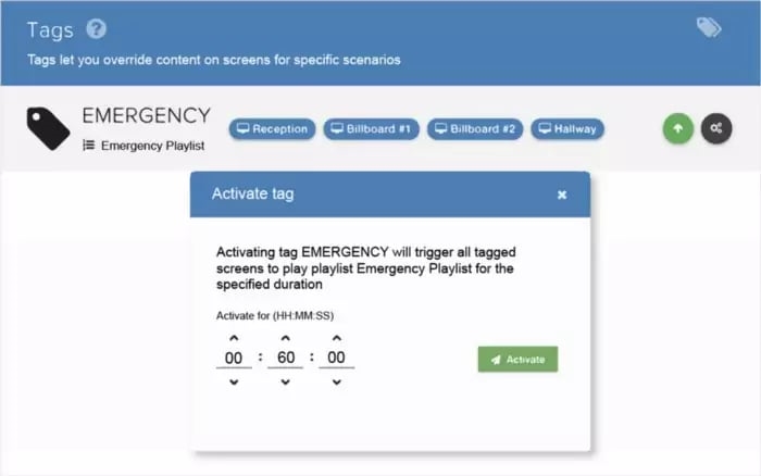 Obsah si můžete připravit předem a načasovat, aby se začal přehrávat v konkrétní den a konkrétní čas a až informace není aktuální, tak zase sama zmizí. Nestane se tedy, že budete zobrazovat informace o dva dny staré akci nebo jídelníček na minulý týden. Displeje mohou zobrazovat jiné informace ráno, jiné před polednem a jiné večer. Zkrátka si můžete obsah a načasování jednotlivých informací sami připravit a zobrazovat podle potřeby. V editoru se připraví grafický obsah, ten se vloží do tzv. playlistu a ten následně načasujete v kalendáři.