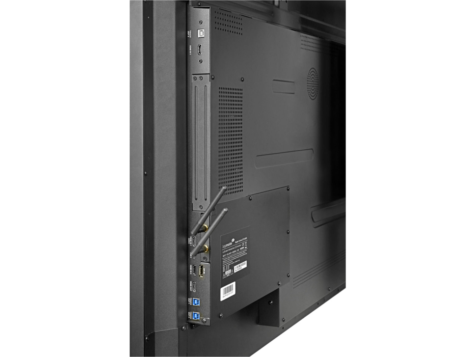Pro zajištění skvělého zvuku je displej vybaven výkonnými reproduktory 45 W. Dále bezdrátovým připojením WiFi, duální LAN a má možnost doplnění o senzor pohybu, čtečku NFC karet nebo videokonferenční kameru.