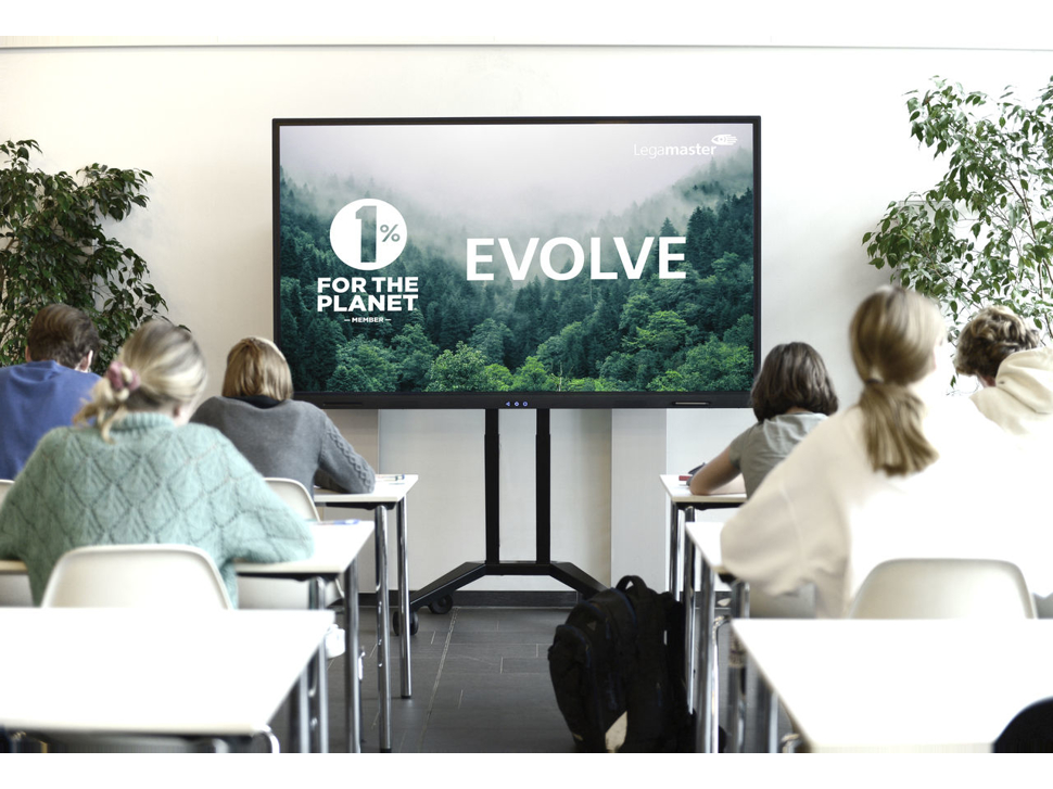 Každý EVOLVE displej představuje krok vpřed směrem k udržitelnému zítřku. Společnost Legamaster je zapojena v mezinárodní organizaci „One Percent for the Planet“. Znamená to, že 1% z prodeje každého zařízení EVOLVE je věnováno na projekty související s obnovou naší planety. Platforma „One Percent for the Planet“ spojuje podniky, které si uvědomují společenskou odpovědnost firem. Displej EVOLVE je nejen kvalitní a inovativní řešení, ale i sdílení důležitých životních hodnot a postojů.