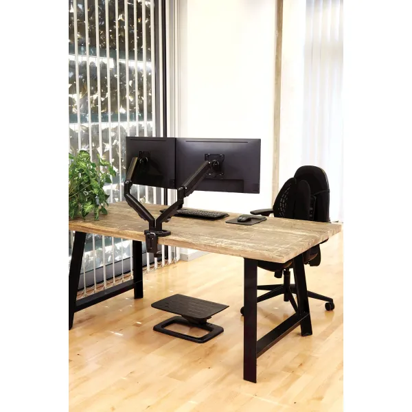 - Snadné nastavení: Technologie plynových pružin zajišťuje plynulé a bezproblémové nastavení monitorů do požadované polohy.