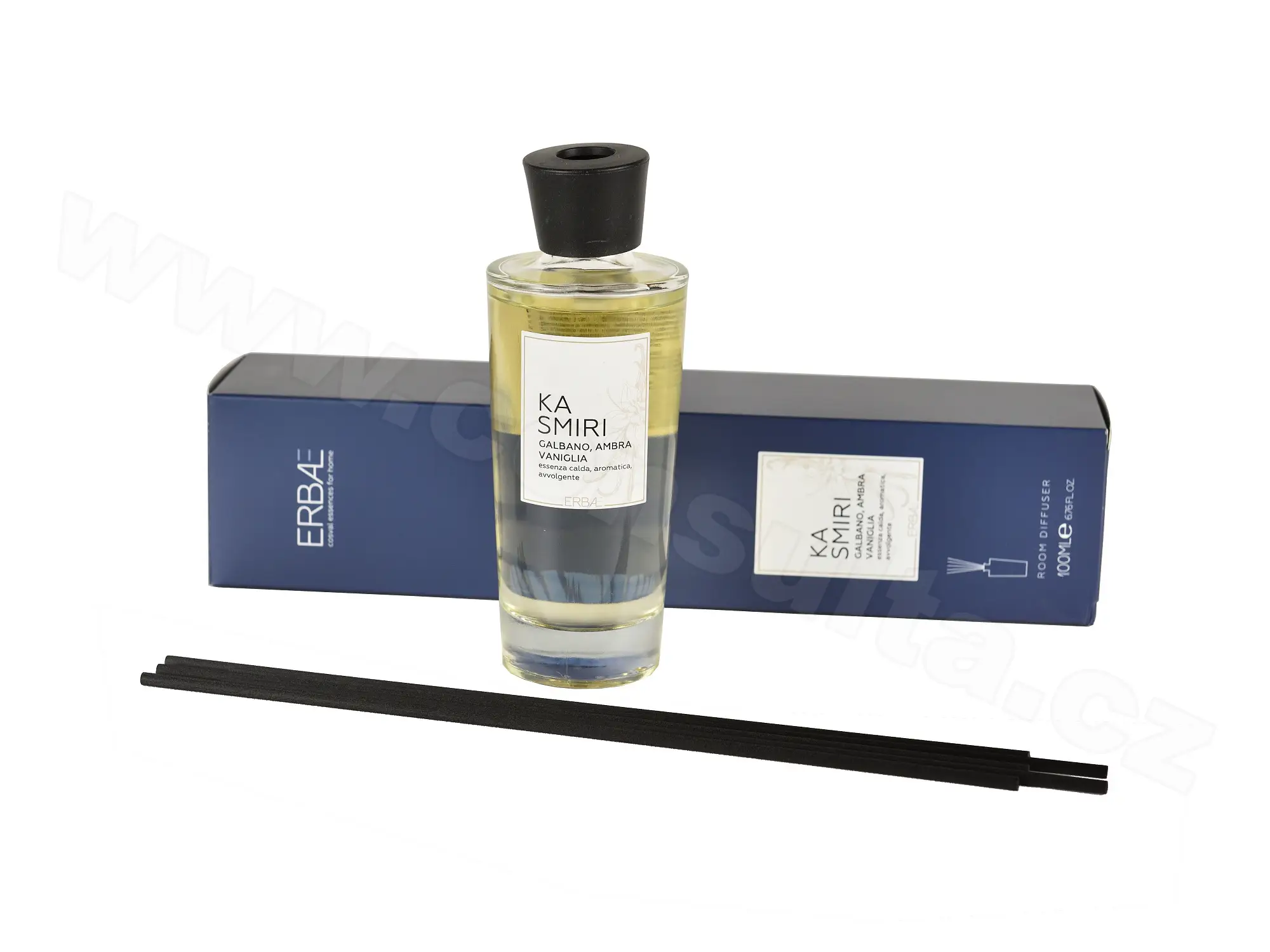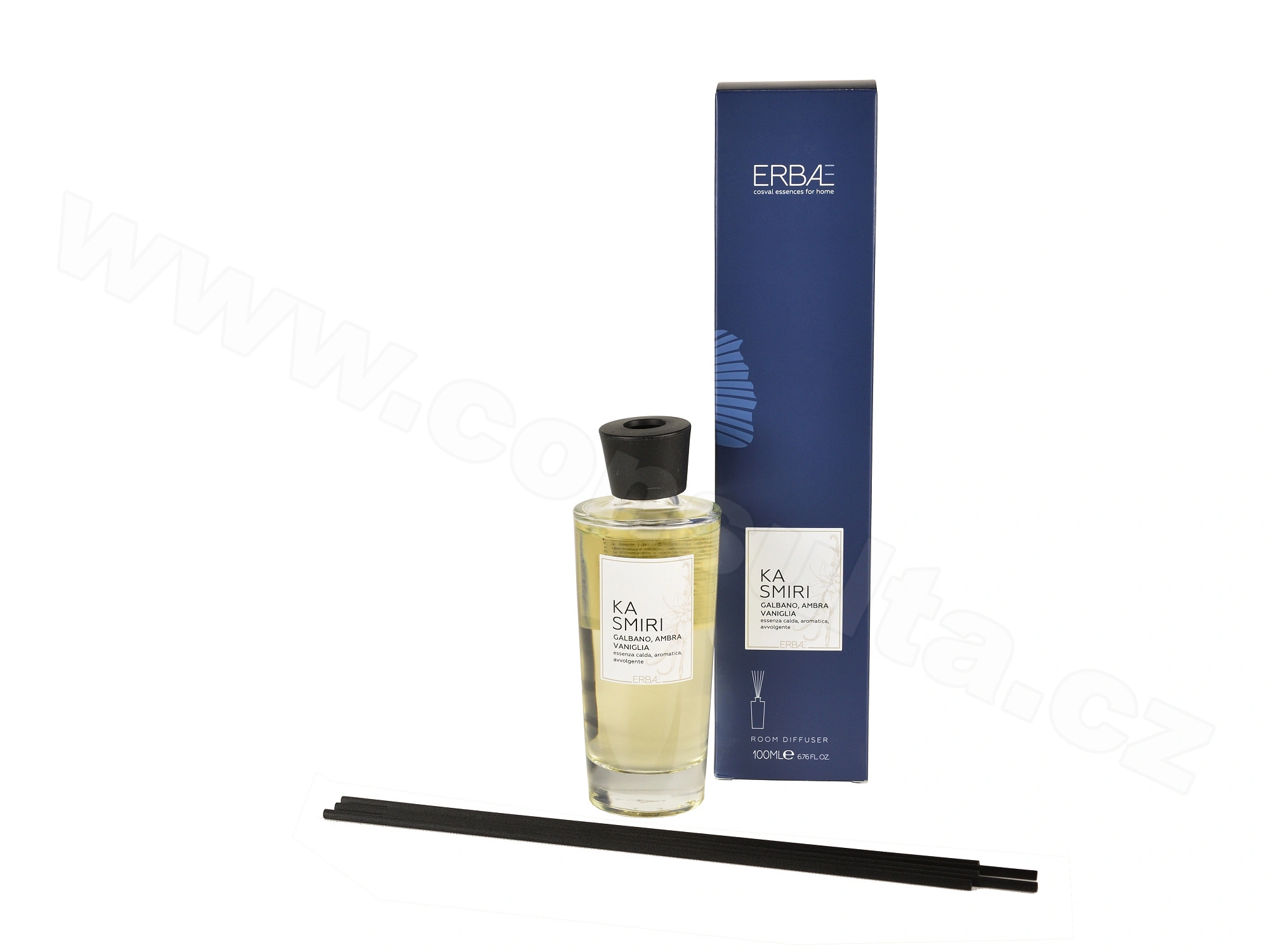 Aromadifuzér ERBAL v soubě snoubí jednoduchos a harmonii. Jedinečné přírodní přísady s vůní KASMIRI vytvoří z Vašeho domova útulné, klidné a příjemné místo. Tomu odpovídá i design difuzéru, který se dodává v čisté skleněné dóze a obsahuje 100 ml vonné náplně.