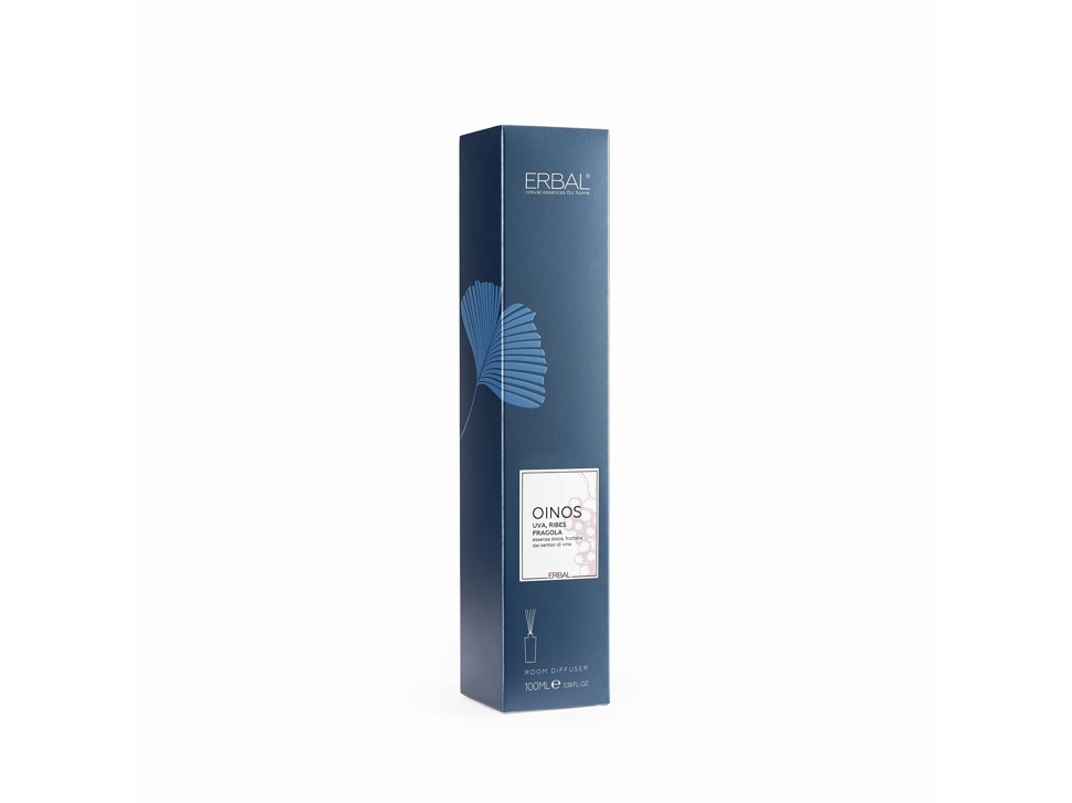 ERBAL Aroma difuzér OINOS voní po sladkém ovoci – pomeranči, hroznech, černém rybízu, jahodách a malinách, které doplňují fialkové okvětní lístky a magnolie. Základ z cedru, vanilky a březového dřeva dodává vůni teplou a obklopující atmosféru.