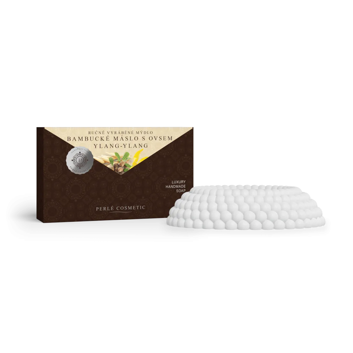 Přírodní ručně vyráběné mýdlo s bambuckým máslem, ovsem a silicí ylang-ylang. Bambucké máslo je velmi cenná kosmetická surovina pro vysoký obsah vitamínů, vosků a nenasycených mastných kyselin. Drobné částečky ovsa dodávají mýdlu velice jemný abrazivní účinek. Vaši pokožku hydratuje, vyživuje, zvyšuje pružnost a vláčnost.