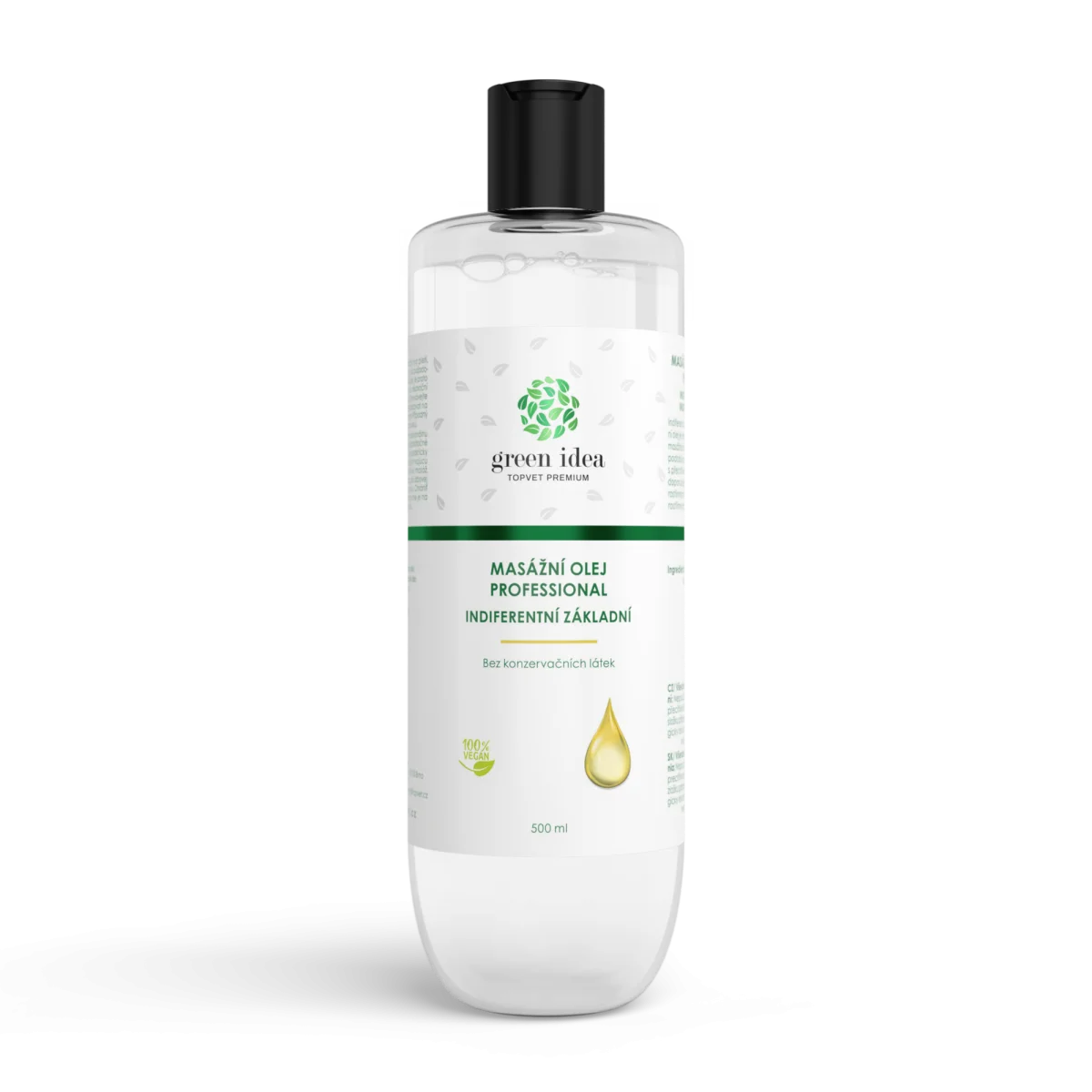 Indiferentní (medicinální) základní masážní olej je vhodný k přípravě individuálních masážních kompozic. Olej je možné v čisté podobě použít pro alergiky a všechny s přecitlivělou pokožkou. Aktivní látky doporučujeme použít v podobě 100% rostlinných silic. Pestrou paletu kvalitních rostlinných silic naleznete v nabídce Green idea.