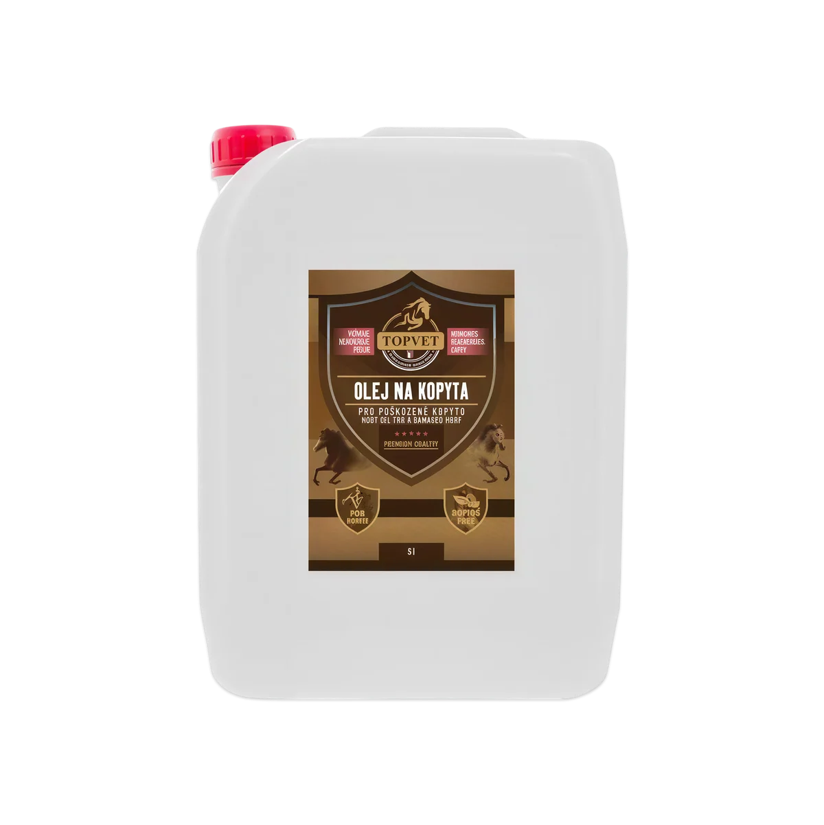 Olej na kopyta je určený pro koně s poškozeným kopytem. Originální receptura kopytní tkáň vyživuje, hojí a regeneruje. Kopyto je po použití zdravé, elastické a připravené na vysokou zátěž. Směs luxusních olejů díky vysokému obsahu nenasycených mastných kyselin přirozeným způsobem vyživuje a regeneruje. Směs vosků kopyto chrání. Směs silic vykazuje silný antiseptický a hojivý účinek.