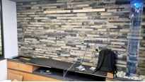 Aby byla jednací místnost příjemnější a útulnější, doplňují ji dva přírodní elementy. Země a voda. Vlevo od displeje je prostor pro rostlinu, která místnosti dodá život a energii. Vpravo je vodní sloupec, který působí uklidňujícím a relaxačním dojmem. Je neobvyklým prvkem, který zaujme každého příchozího. Obklad za displejem je v tlumených barvách. Působí nenápadně a dává vyniknout důležitým informacím, které budou zobrazeny na displeji.
