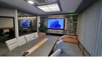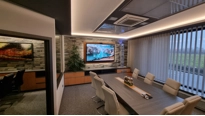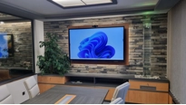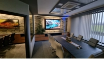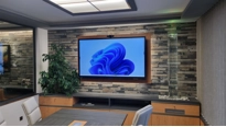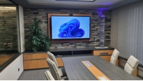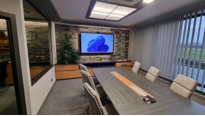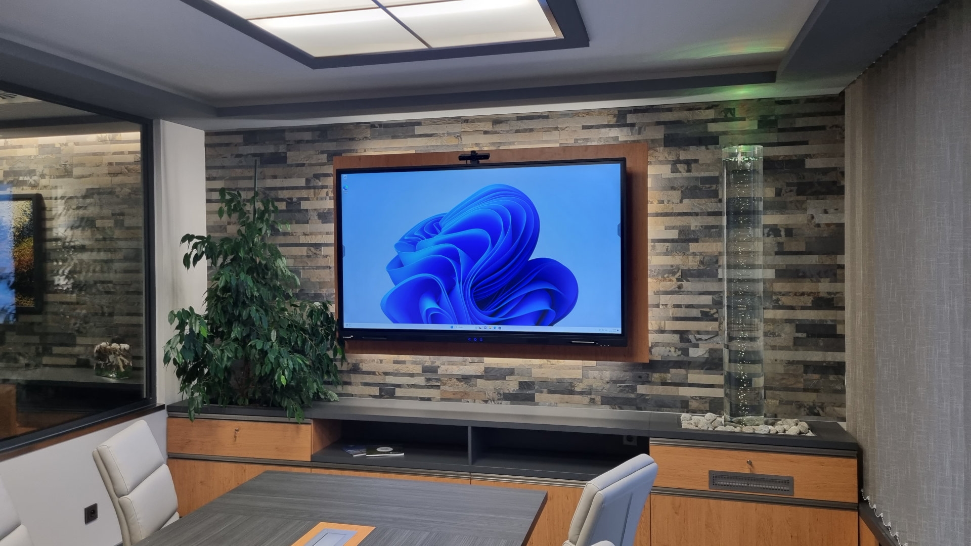 Ústředním prvkem jednací místnosti je displej z řady Legamaster EVOLVE. Je to velkoformátový interaktivní displej s úhlopříčkou 86˝ a rozlišením 4K. Displej má integrovaný OPS počítač a 4K ePTZ videokonferenční kamera. Díky tomu displej perfektně připravený na náročné porady, jednání se zákazníky i videokonference s dodavateli.