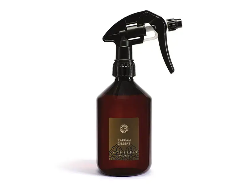 Interiérový parfém ve spreji ve velkém formátu 500 ml a s trigger rozprašovačem je ideální pro provonění velkých prostor, látek, závěsů či záclon vůní ZAFRAN DESERT, což je ambrová, dřevitá, aromatická a kořeněná vůně.