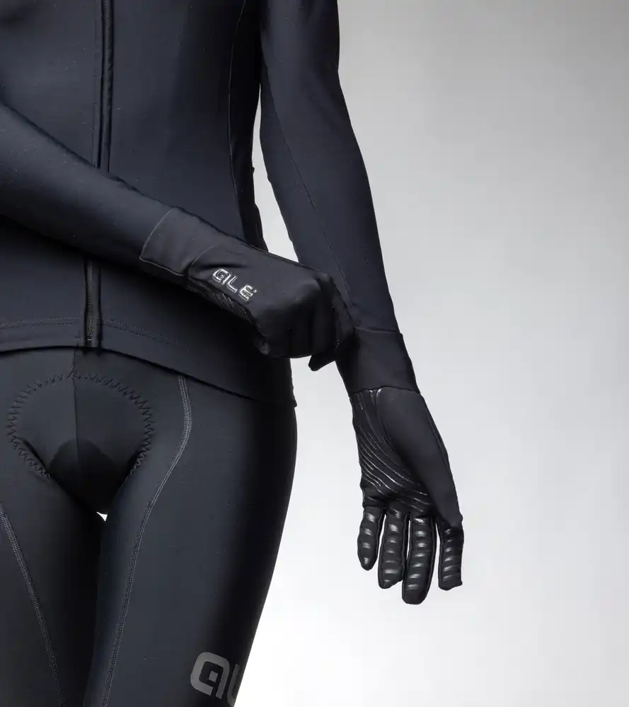 Dlouhé prstové cyklistické rukavice ALÉ SPIRALE (Unisex, black-black)