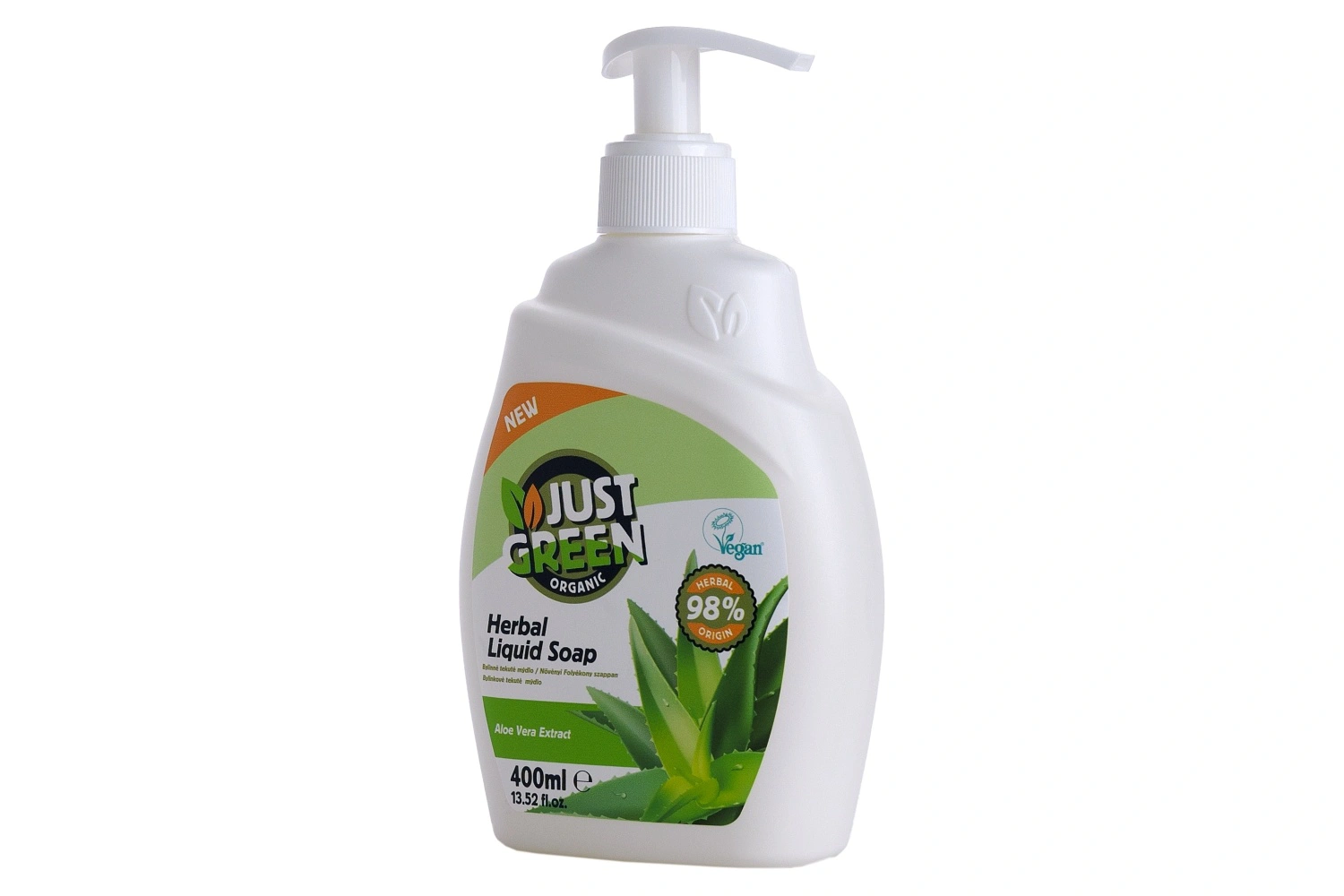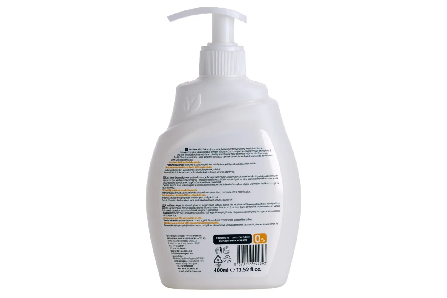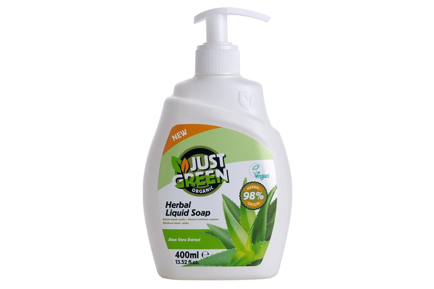 Přírodní tekuté mýdlo na ruce Just Green Organic je jako něžný dotek přírody pro vaši pokožku – obsahuje až 98 % čistých přírodních složek, které pokožku nejen důkladně očistí, ale i hluboce hydratují díky jemným výtažkům z aloe vera a přinášejí příjemnou, jemnou vůni.