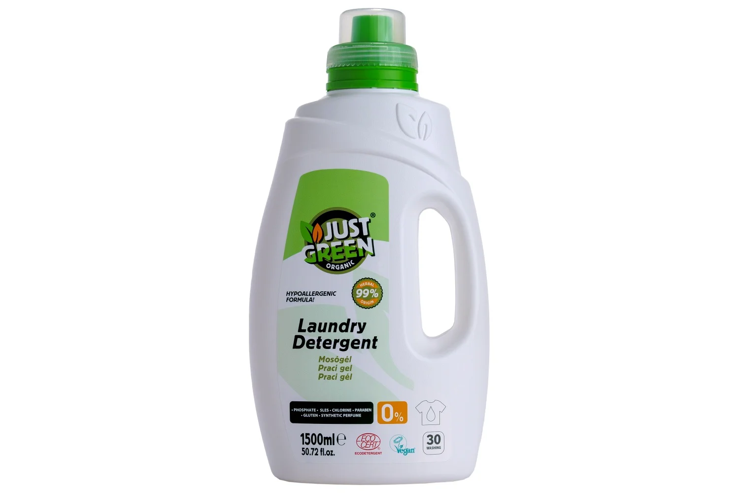 Tekutý prací prostředek Just Green Organic účinně a šetrně čistí veškeré oblečení bez poškození. Je ideální na praní barevného i bílého prádla, vhodný na praní v pračce i ručně.