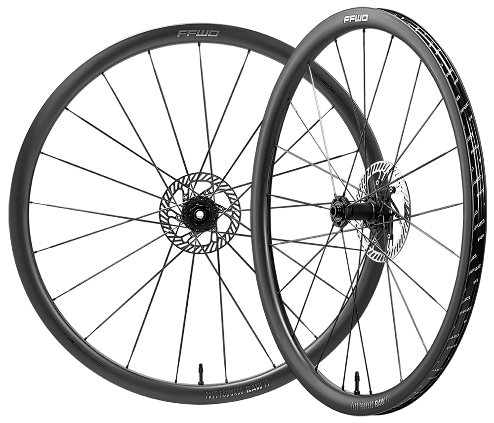 Absolutní vrchol nabídky tvoří kola RAW CS (CS = Carbon Spokes). Ráfek využívá technologii LAW TECH (zkratka z Laminar Airflow Wing), kterou znáte i z řady RYOT. Jde o vlastní konstrukční řešení FFWD zaměřené na lepší aerodynamiku a zároveň vyšší tuhost, a to zejména při použití se širším obutím. Tato kola jsou navržena primárně pro silniční použití a laděna na co nejefektivnější přenos výkonu i plynulé obtékání vzduchu.
