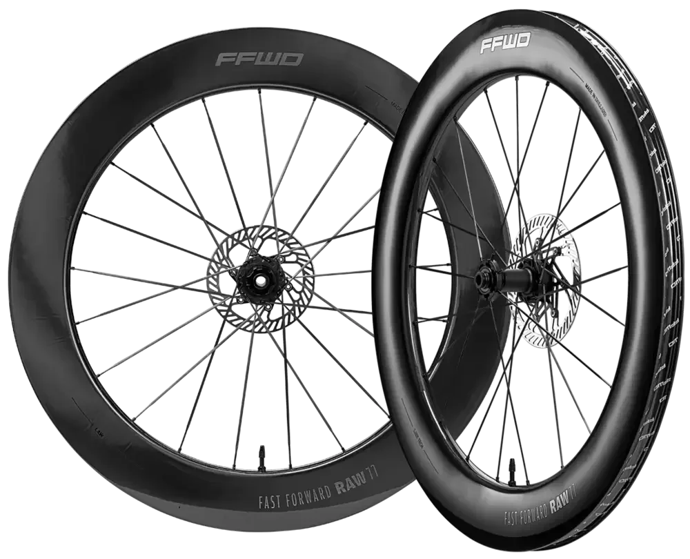 Absolutní špičku nabídky tvoří kola RAW CS (CS znamená Carbon Spokes). Ráfek je postaven na technologii LAW TECH (zkratka z Laminar Airflow Wing), kterou FFWD používá i u řady RYOT. Tento vlastní tvar zlepšuje proudění vzduchu a zároveň zvyšuje tuhost, a to především při použití širšího obutí.