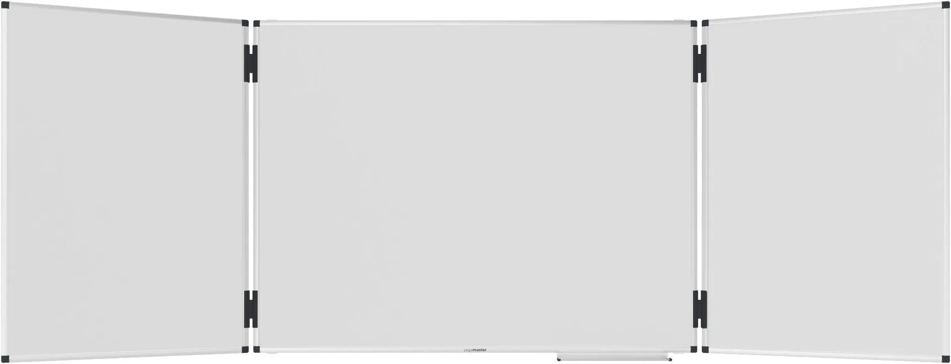 Trojdílná keramická bílá tabule UNITE PLUS - TRIPTYCH (šířka x výška 120x90 cm) v hliníkovém rámu vhodná do malých místností. Zavírací křídla jsou popisovatelné z obou stran. Magnetický keramický povrch (záruka 25 let) je vhodný pro popisování za sucha stíratelnými popisovači.