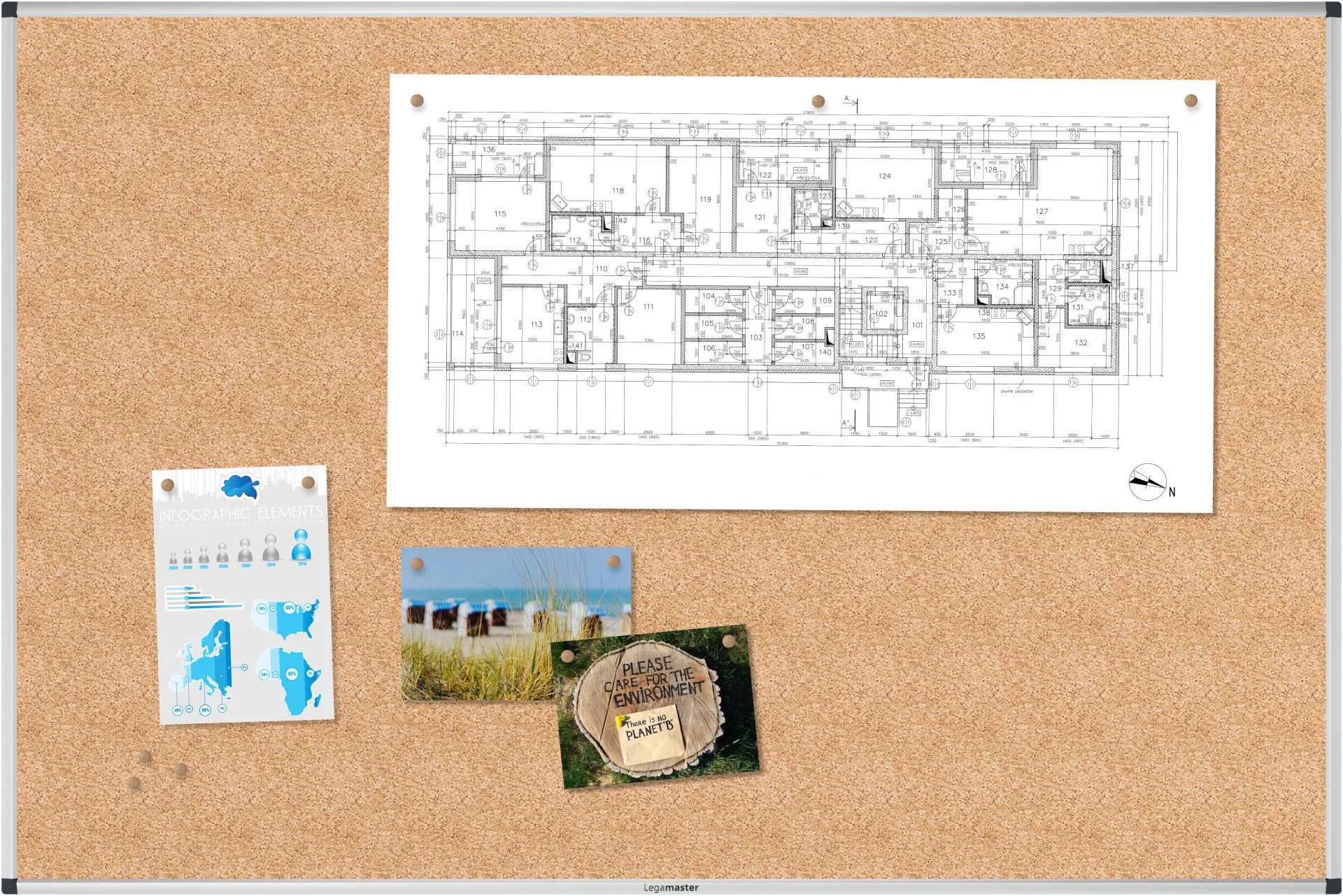 Moderní korková nástěnka z řady UNITE v elegantním hliníkovém rámu s plastovými rožky. Je možné ji instalovat vertikálně i horizontálně, součástí balení je montážní sada.