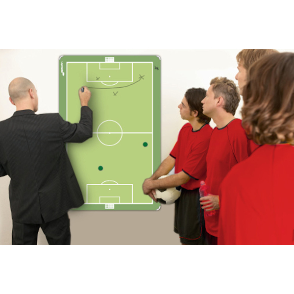 Magnetická tabule v bezrámovém provedení se zaoblenými plastovými rohy s předtiskem. Lehká konstrukce umožňuje snadnou manipulaci a přímé držení v ruce. Ideální pro trenéry, sportovní kluby a zájmové kroužky. Dodáváno včetně odkládací poličky.