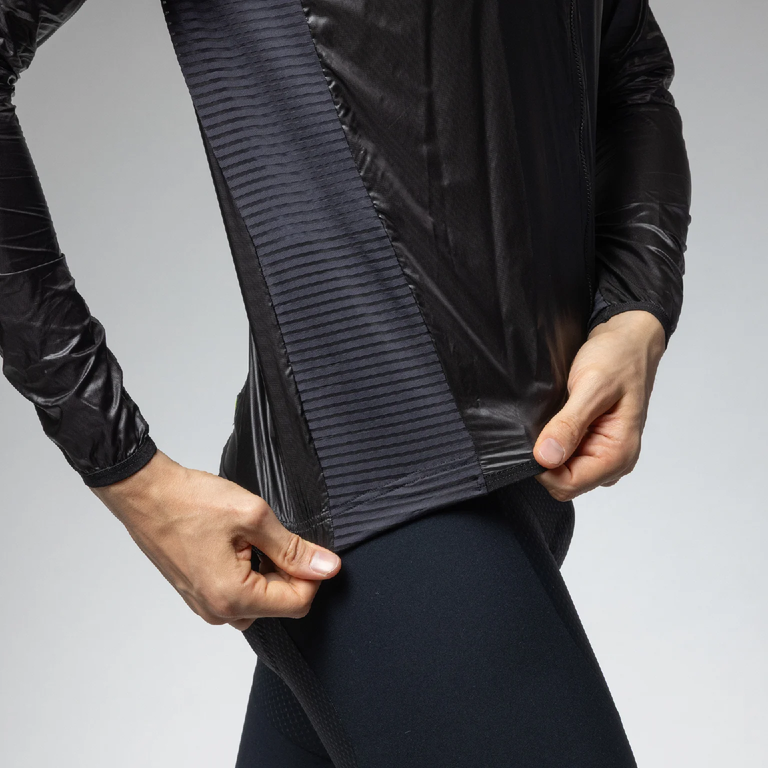 • Elastický silikonový pásek na spodním lemu i rukávech udrží bundu na správném místě.