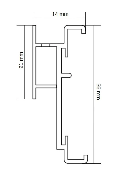 Rozměry: 3,6 × 1,4 × 100 cm (v × š × d)
