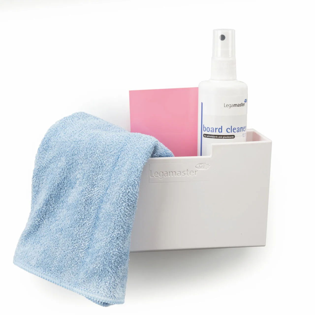 Vaše kancelář či učebna bude díky uložení všech příslušenství (mikrovláknová utěrka, čistící sprej na tabule) působit uklizeným a čistým dojmem.