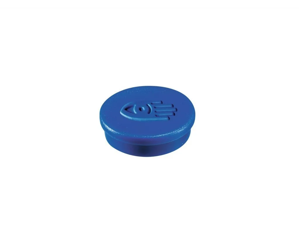 Sada 10 kusů kulatých magnetů modré barvy o průměru 20 mm.
