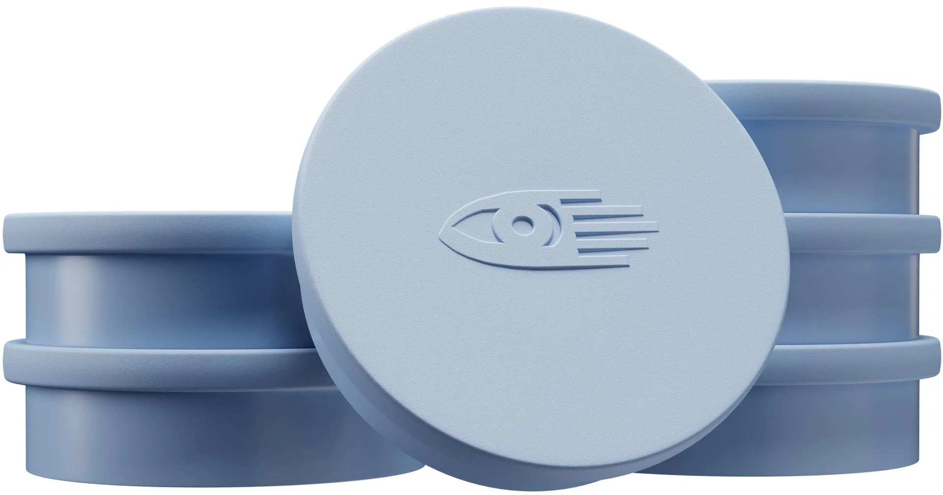 Sada 10 kusů kulatých magnetů světle modré barvy o průměru 20 mm.