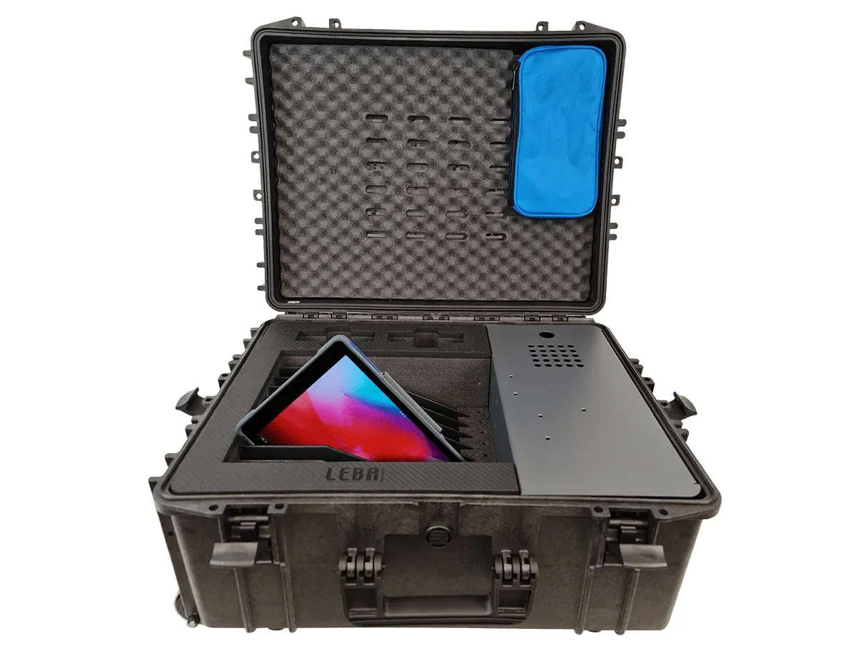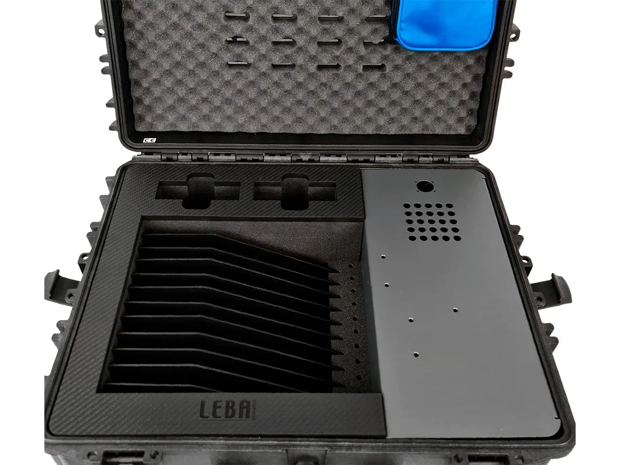 Mobilní nabíjecí kufr pro 16 tabletů je ideální řešení pro větší třídy a školy. Nabízí vysokou kapacitu, podporu větších zařízení až do 13" a spolehlivé USB-C nabíjení v odolném mobilním provedení.