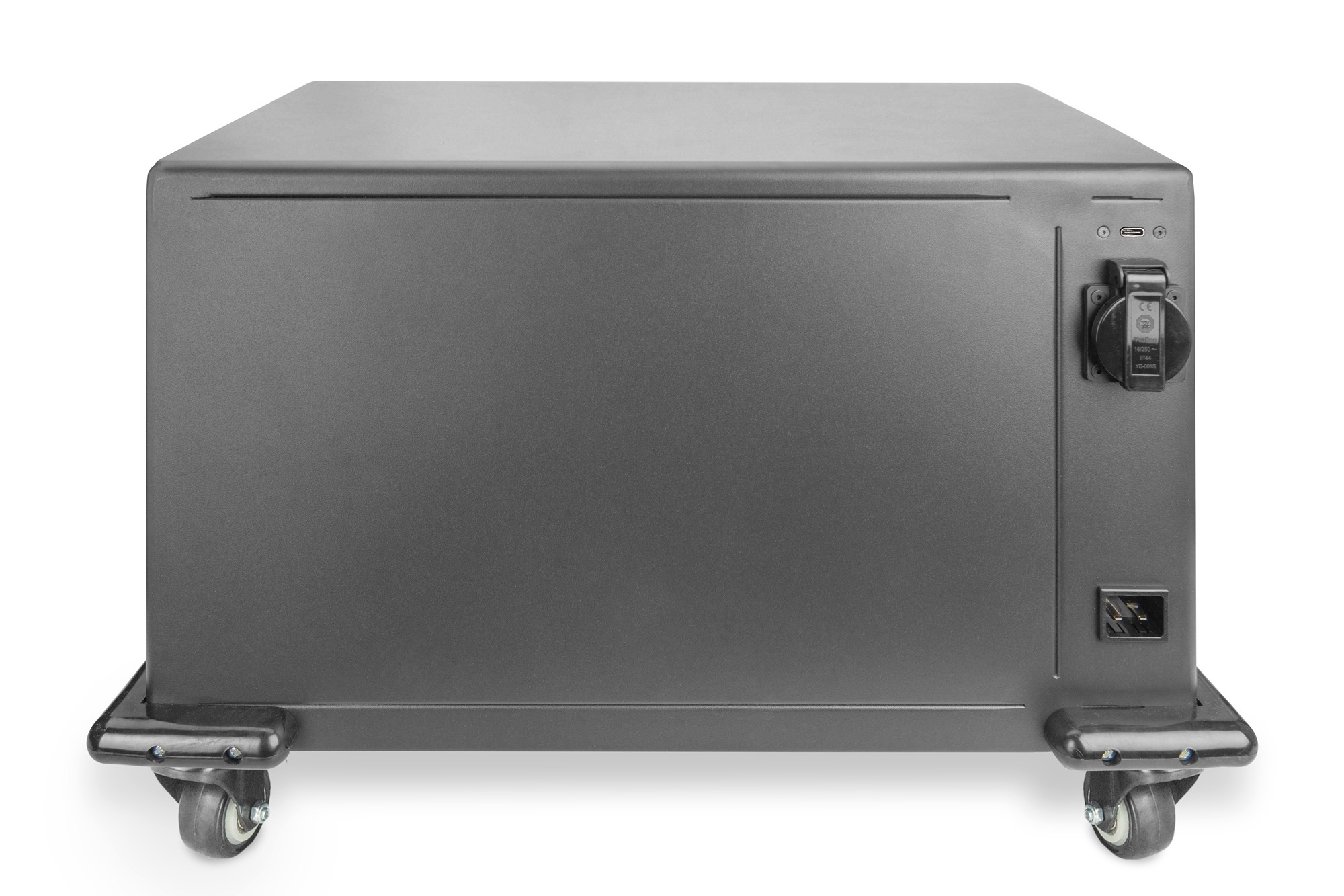 Zařízení lze nabíjet přímo z USB-C konektoru a to proudem 3A při 5V / 2A při 9V / 1,5A při 12V. Skříň je vybavena 4 robustními kolečky, díky čemuž je mobilní, a tak ji lze velmi snadno a bez námahy přepravovat z jednoho místa na druhé. Skříň je opatřena prosklenými dvířky a kódovým zámkem, přístup k cenným zařízením je tak zabezpečený.