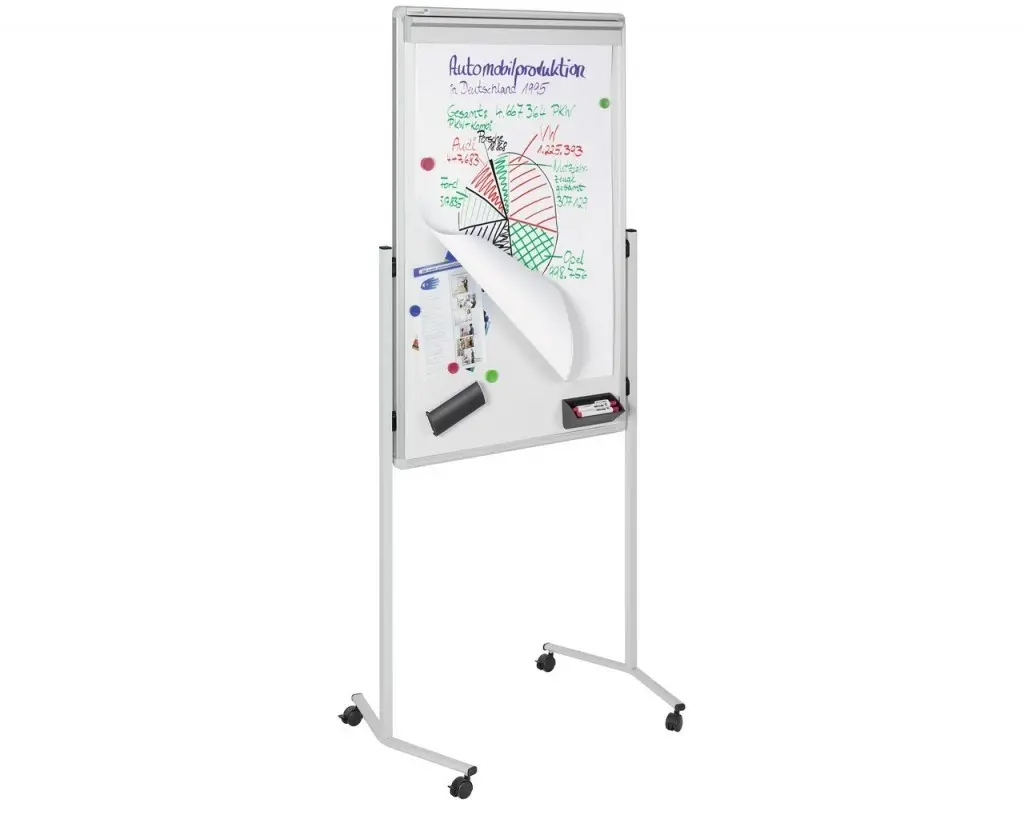 MULTIBOARD 3 v 1 - tabule určená pro prezentace, školení, zvláště vhodná do malých kanceláří. Multifunkční - poslouží jako bílá magnetická tabule + špendlíková tabule + flipchart. Jednu stranu tvoří špendlíková tabule, druhou stranu bílá keramická tabule (záruka 25 let na povrch), na které je připevněna odnímatelná magnetická lišta. Lze zde zavěsit kterýkoli ze standardních flipchart bloků. MULTIBOARD šetří místo, nabízí kompaktní design, montáž je velice snadná a rychlá. Mobilitu zajišťují kolečka, z nichž každé obsahuje brzdu.Kompletováno s blokem papíru. Špendlíková tabule je dostupná v barvě modré nebo šedé. Velikost tabule je (v)120x(š)75 cm, max. velikost multiboardu je 195x85 cm, váha 11,6 kg.Ideální pro bezpečný transport v brašně (kód LEG-7230100).