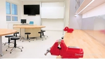Protože je to kreativní učebna tak tu máme samozřejmě dvojici tabulí na pylonech a také to nejdůležitější - displej. Jistě víte, že youtube a internet obecně je plný nápadů a návodů jak něco vytvořit, upravit nebo předělat. Je to komunikační okno pro mladou generaci, která se může díky displeji snadno a rychle naučit postupy tvorby různých předmětů.
