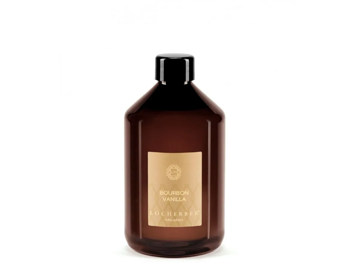 Náhradní náplň Locherber Milano pro difuzéry s vůní BOURBON VANILLA, což je gourmand, květinová, vanilková vůně inspirovaná Madagaskarem. Velikost: 500 ml
