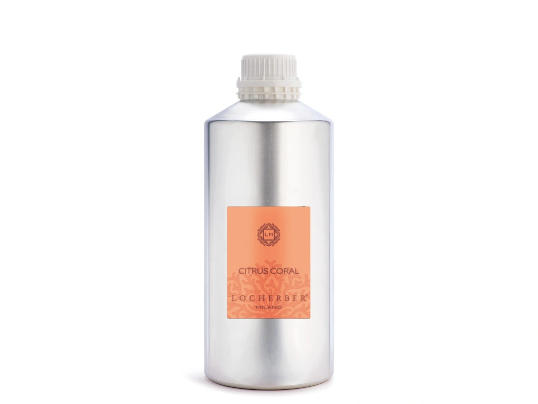 Náhradní náplň Locherber Milano pro difuzéry s vůní CITRUS CORAL, což je svěží, jemná, ovocná, citrusová vůně. Velikost: 2500 ml