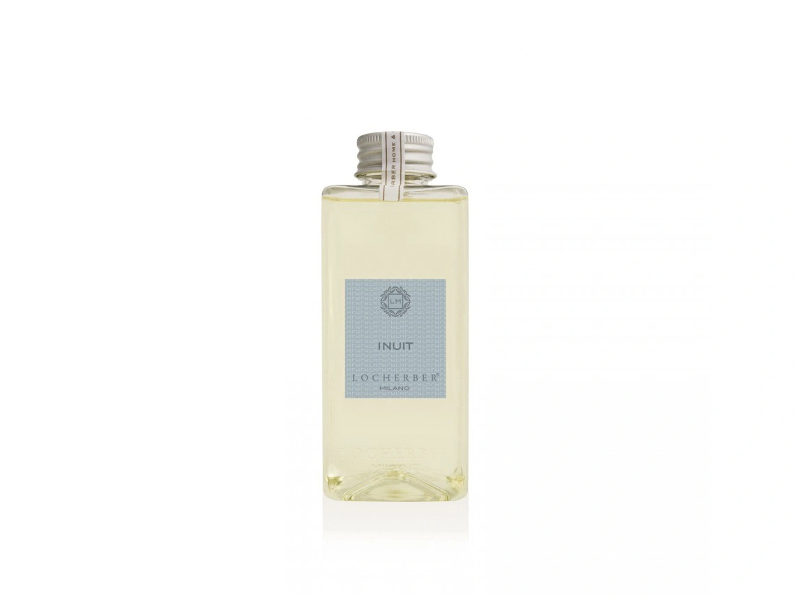 Náhradní náplň Locherber Milano pro difuzéry s vůní INUIT, což je svěží, zeleně citrusová vůně. Velikost: 250 ml