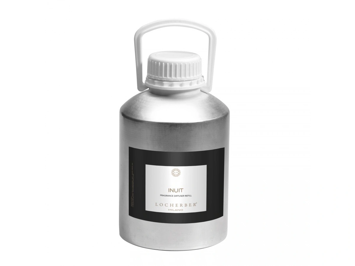 Náhradní náplň Locherber Milano pro difuzéry s vůní INUIT, což je svěží, zeleně citrusová vůně. Velikost: 2500 ml