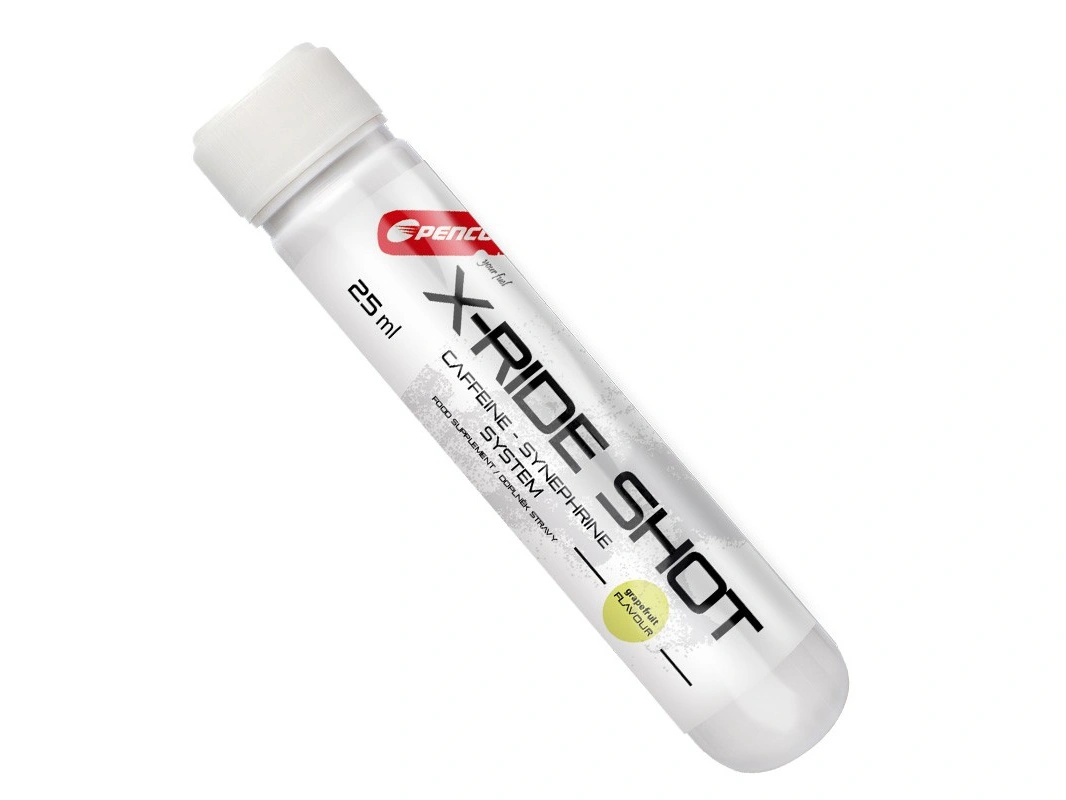 Penco® X-RIDE Shot je tekutý kofeinový stimulant bez cukru v jednorázových ampulích. Obsahuje unikátní kombinaci biologicky aktivních látek kofeinu, synefrinu, taurinu a vitamínů B6 a B12 pro celkové povzbuzení organismu.