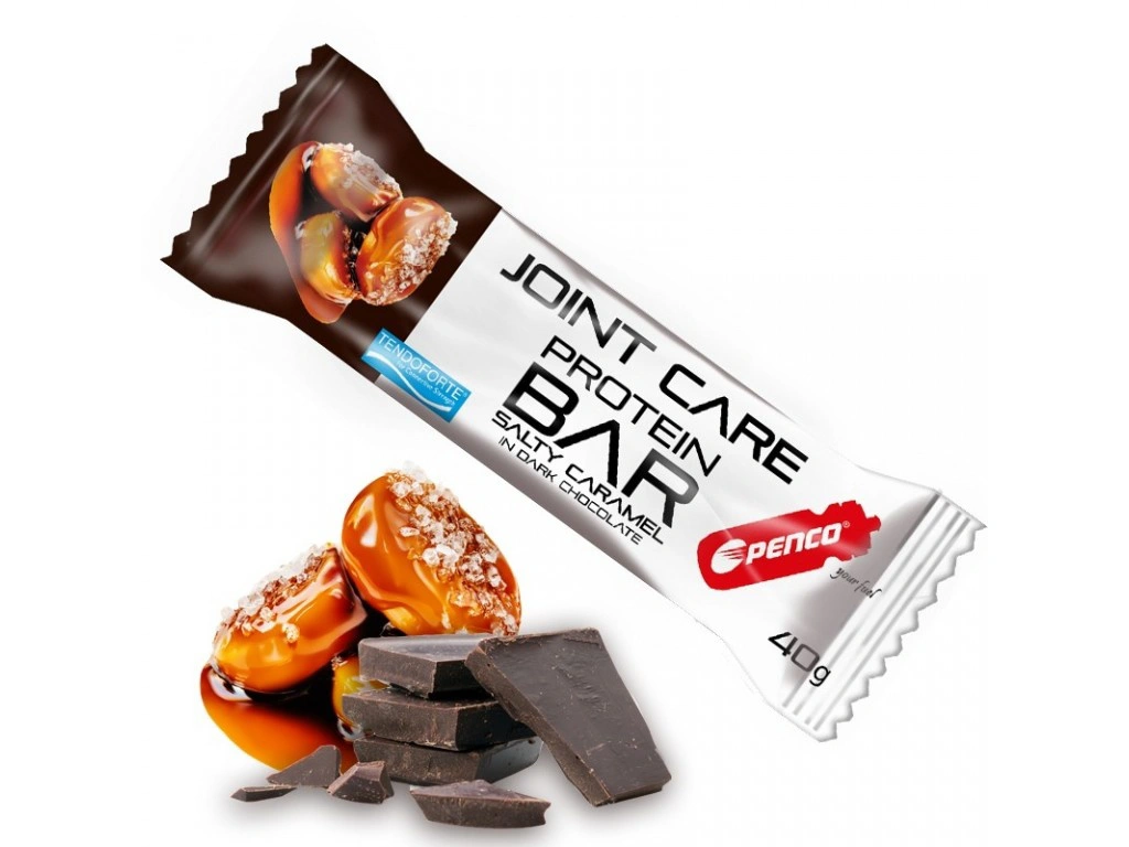 Penco Joint Care Protein Bar je proteinová tyčinka s příchutí slaného karamelu, bez přidaného cukru. Ideální pro sportovce a při dietě. Obsahuje 30 % bílkovin, kolagen a vlákninu.