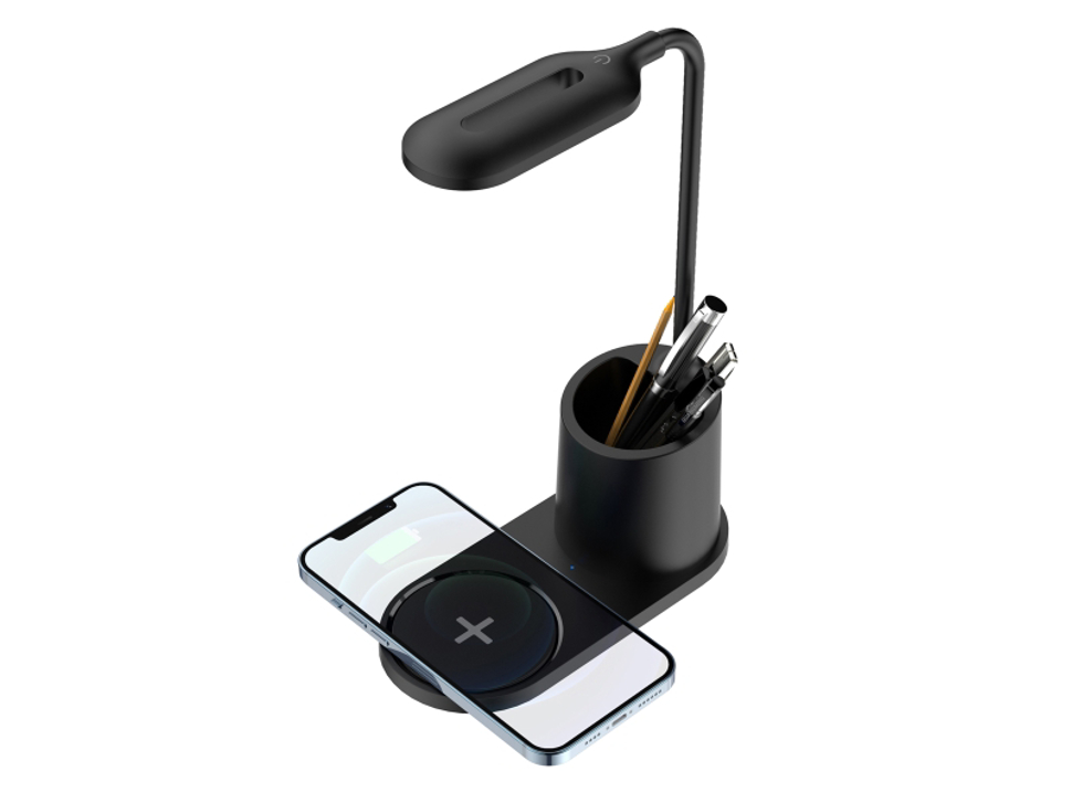 Stolní LED lampa PDL1930 je praktickým pomocníkem při práci, studium i relaxaci. Její kompaktní design a elegantní provedení se skvěle hodí na pracovní stůl, noční stolek nebo do domácí kanceláře. Tělo lampy je vyrobeno z odolného materiálu s hladkým povrchem a dostupné je v bílé a černé variantě. Lampa je vybavena úsporným LED zdrojem, který poskytuje neutrální až studené bílé světlo v rozmezí 3200–6500 K. Tento rozsah teploty světla je ideální pro dlouhodobou činnost bez nadměrného namáhání očí – například při čtení nebo práci na počítači. Index podání barev (CRI) přesahuje hodnotu 80 Ra, což znamená, že barvy osvětlovaných předmětů působí přirozeně. Díky dotykovému ovládání si můžete plynule regulovat intenzitu světla podle aktuálních potřeb. Ohebný krk lampy umožňuje přesné nastavení směru svícení. Lampa navíc nabízí integrovanou bezdrátovou nabíječku telefonu, která pracuje na základě standardu Qi. Stačí položit smartphone na vyznačenou plochu základny a zařízení se začne nabíjet. Tato plocha je vybavena měkkou gumovou podložkou, aby se předešlo poškrábání mobilu. Napájení samotné lampy probíhá prostřednictvím USB kabelu – tedy z běžné USB nabíječky, powerbanky nebo počítače. (USB adaptér není součástí balení.) LED zdroj má životnost až 30 000 hodin. Adaptér není součástí balení. Napájecí kabel je součástí balení. Napětí napájení je 9V/1,66A. Lampa je vybavena vestavěnou LED technologií – není potřeba dokupovat žárovku. Lampa obsahuje integrovanou bezdrátovou nabíječku kompatibilní s Qi zařízeními. Možnost nastavení intenzity světla (stmívání).