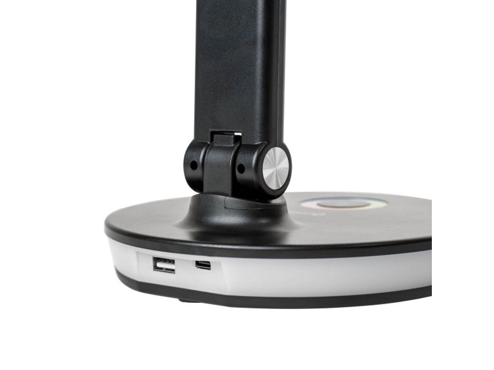 Stolní LED lampa PDL400RGB zaujme nejen svým moderním designem, ale i funkčností. Díky nastavitelnému rameni a možnosti stmívání si snadno přizpůsobíte světelné podmínky přesně podle svých potřeb – ať už pracujete, čtete nebo jen relaxujete. Lampa disponuje funkcí nastavení teploty světla v rozsahu od 2800 do 6000 K, což umožňuje přechod mezi teplým, neutrálním a studeným bílým světlem. Výkonné LED diody (celkem 36) o výkonu 12 W zajišťují silný světelný tok až 500 lumenů, ideální i do místností s nízkou intenzitou denního světla. Zajímavým designovým prvkem je RGB podsvícení základny, které umožňuje nastavit barevnou atmosféru podle nálady nebo denní doby. Můžete nechat svítit jen základnu lampičky jemným světlem volitelné barvy např. během večerních hodin, kdy nepotřebujete intenzivní osvětlení. Integrovaný USB port navíc umožňuje pohodlné nabíjení mobilního telefonu nebo tabletu, aniž by bylo nutné hledat volnou zásuvku. Konstrukce lampy je flexibilní, s ramenem dlouhým 33 cm a výškou 40 cm. Stabilní základna o průměru 16,5 cm zajišťuje pevné umístění na pracovním stole. Napájení je řešeno pomocí kabelu o délce 100 cm (DC 5V). Lampa je navíc vybavena USB porty, které umožňují nabíjení chytrého telefonu nebo tabletu přímo z lampy, bez nutnosti použití dalších zdrojů energie – ideální řešení pro přehledný a funkční pracovní stůl. Model je dostupný ve dvou barevných variantách – bílé a černé – takže si můžete vybrat provedení, které nejlépe ladí s vaším interiérem. Adaptér i napájecí kabel je součástí balení. Napětí napájení je 5V/2A,10W. Lampa je vybavena vestavěnou LED technologií – není potřeba dokupovat žárovku. Barevné podsvícení základny. Možnost nastavení intenzity světla (stmívání). Lampa je vybavena USB portem – snadné nabíjení telefonu nebo jiného zařízení.